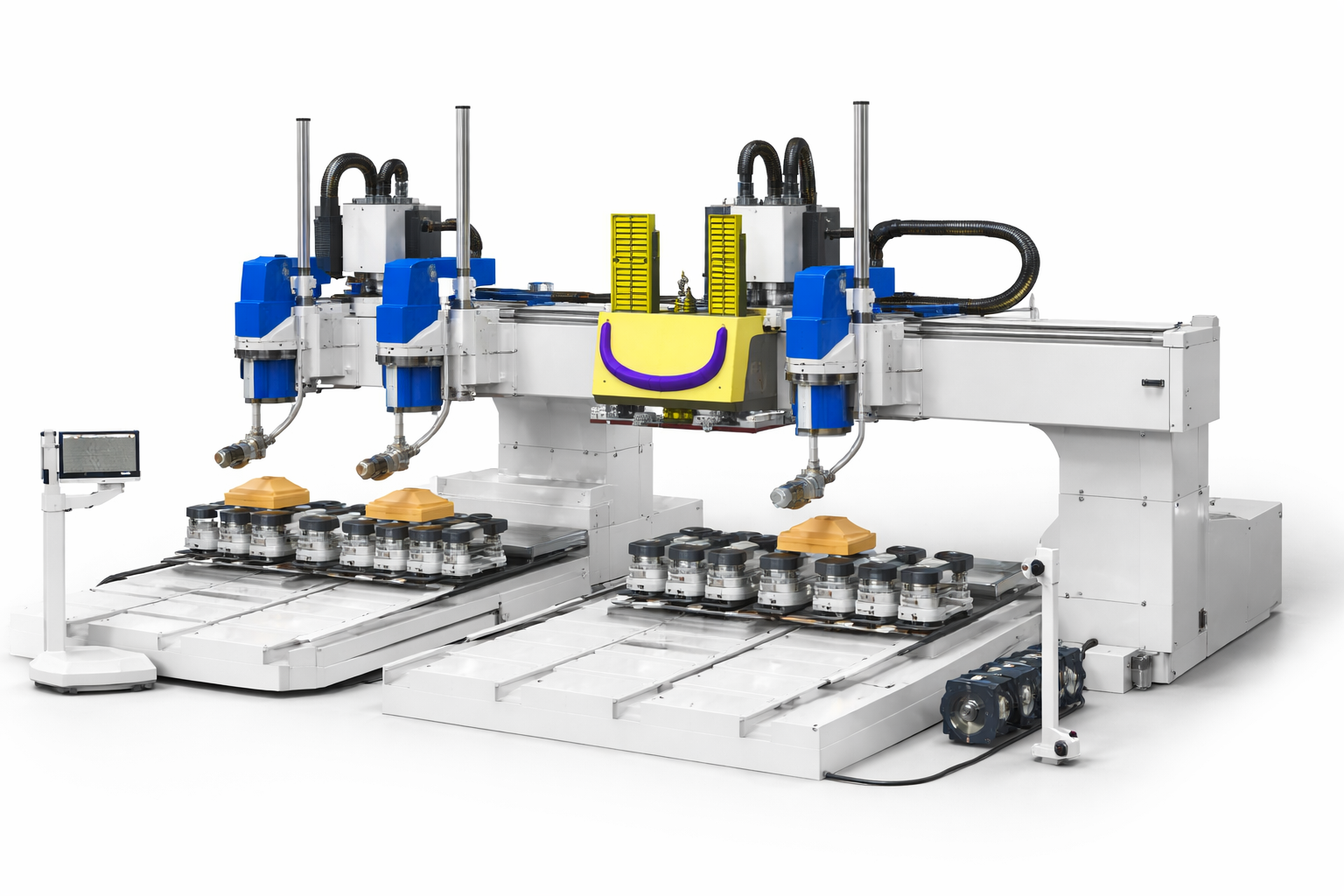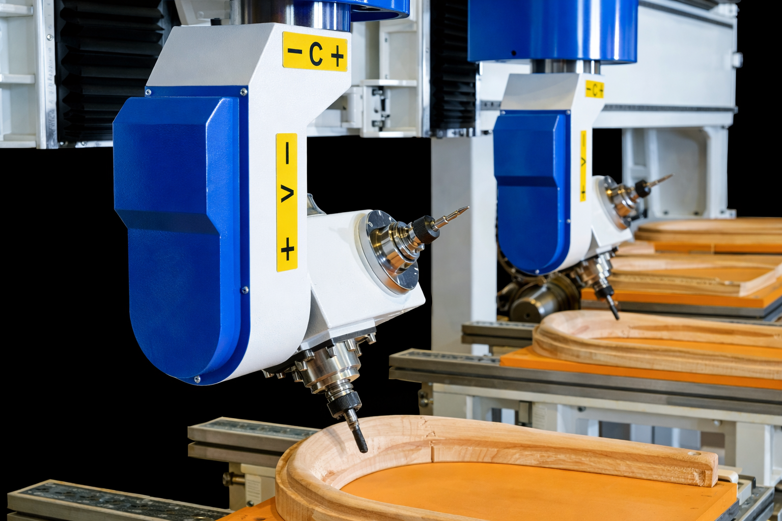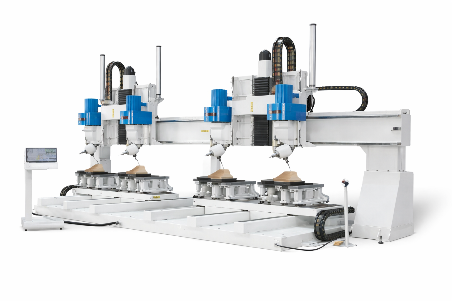 The MU-DM54 is a dual-station four-head 5-axis machining center designed for efficient and flexible multi-workpiece processing. Equipped with four manual tool-change spindles, the machine can process up to four workpieces at the same time. Different tools such as saw blades, milling cutters, drills, and round-nose tools can be installed according to different production needs.