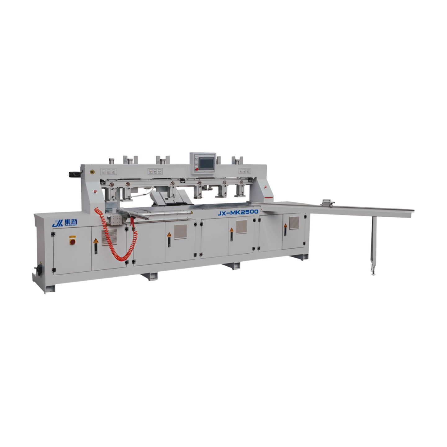 The JX-MK2500 is a high-efficiency CNC splicing machine designed for precise and multi-angle machining of frame products, assembly doors, and furniture parts made from both solid wood and panel materials. This model integrates cutting, mortising, and milling functions into one advanced processing unit.