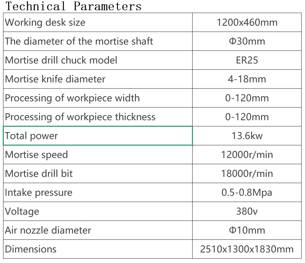 • Capable of handling mortise diameters from 4mm to 18mm, supporting a wide range of joinery types.