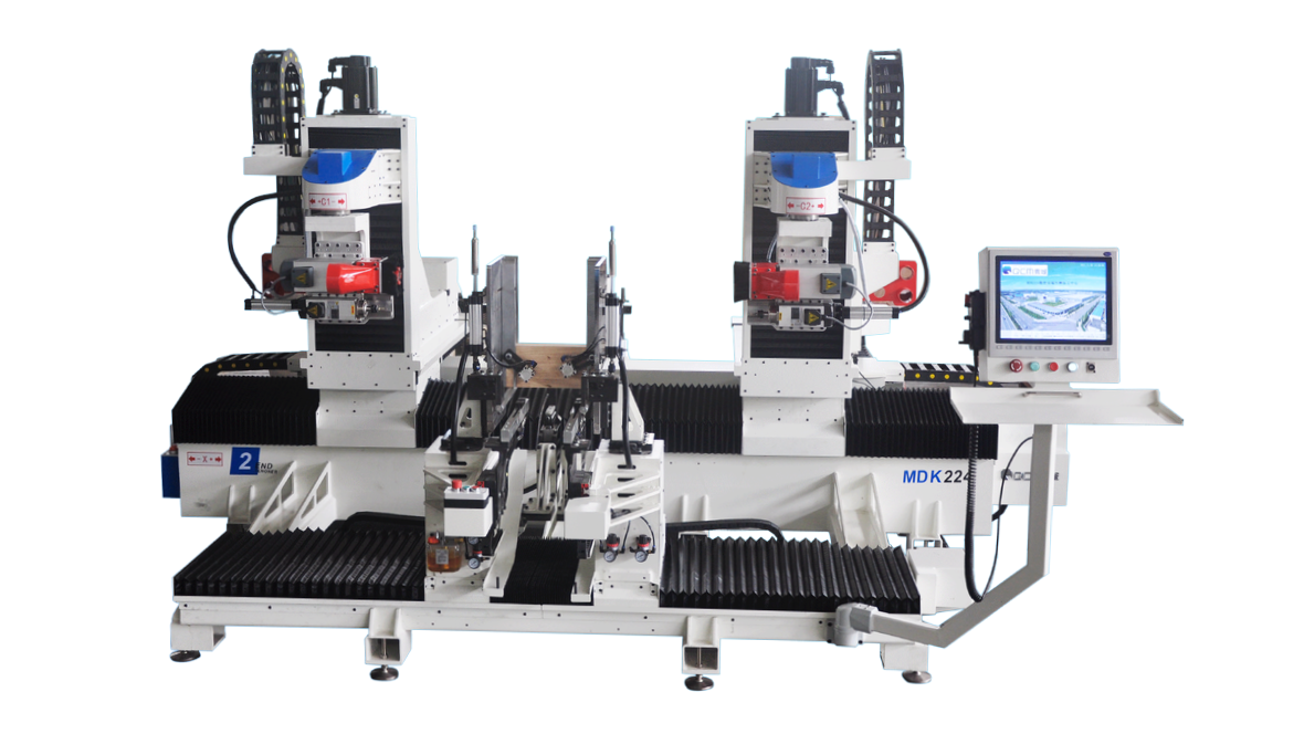 MDK224 is a CNC double-end tenoning machine for high-accuracy end profiling and joint machining on wood components. It supports straight tenons and 45° angle tenons, with servo-driven feed and automatic loading/unloading for continuous production.