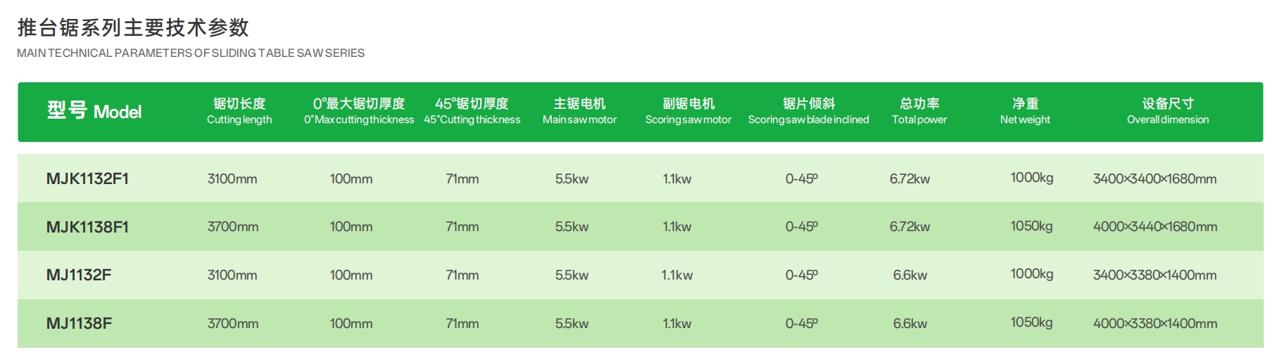 The MJK1132F1 is a high-precision sliding table saw engineered for modern woodworking workshops. Designed with advanced automation features, this model integrates both robust mechanical structure and intelligent control systems to ensure optimal accuracy, safety, and operator convenience.