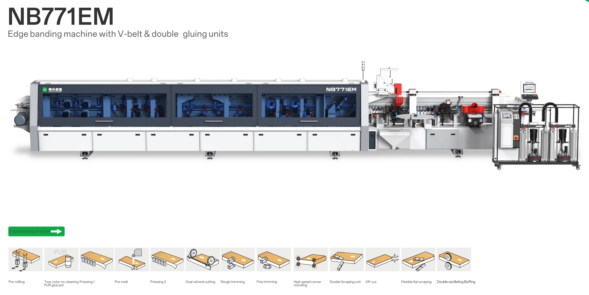 NB771EM Edge Banding Machine with V-Belt and Double Gluing Units