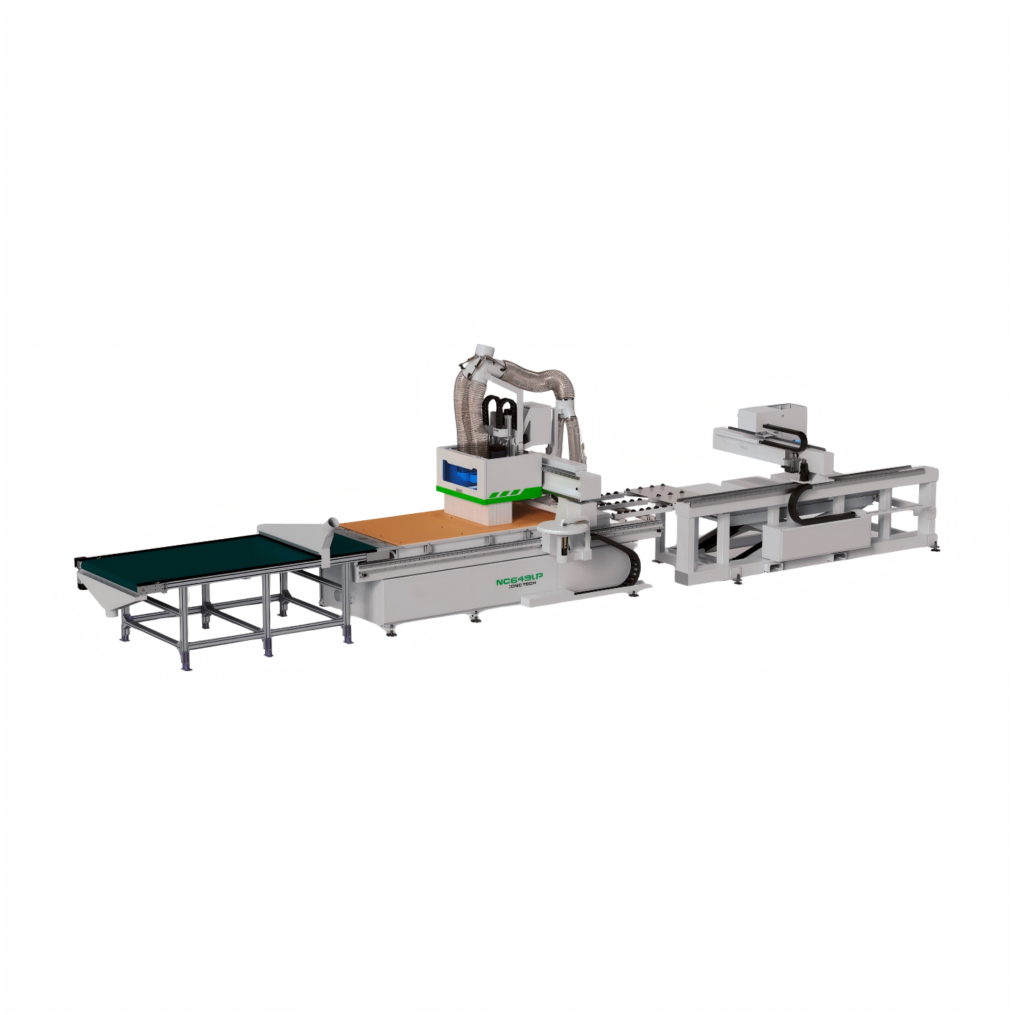 The NC649LP is an advanced CNC nesting machine designed for panel furniture production, integrating automated loading and unloading, high-speed cutting, and label printing. It’s ideal for smart factories and digital production lines pursuing high efficiency, precision, and dust-free environments.
