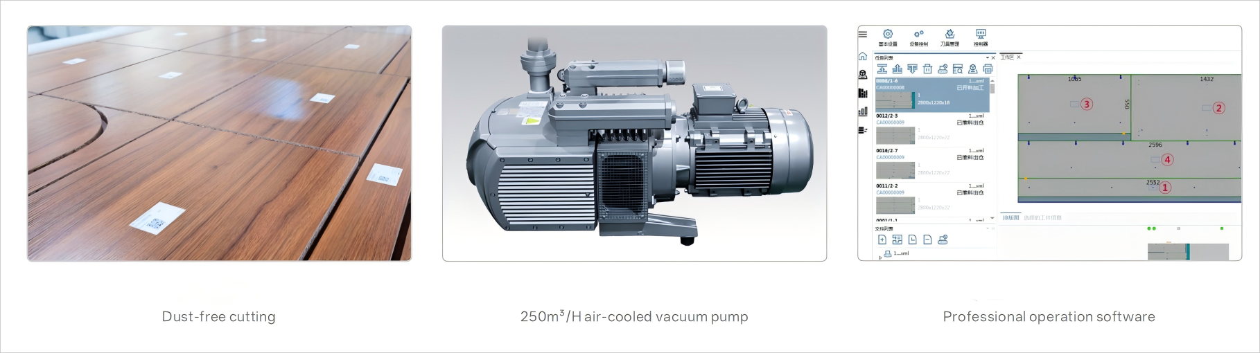 250m³/h air-cooled vacuum pump: Strong holding power for steady cutting on different panel types.