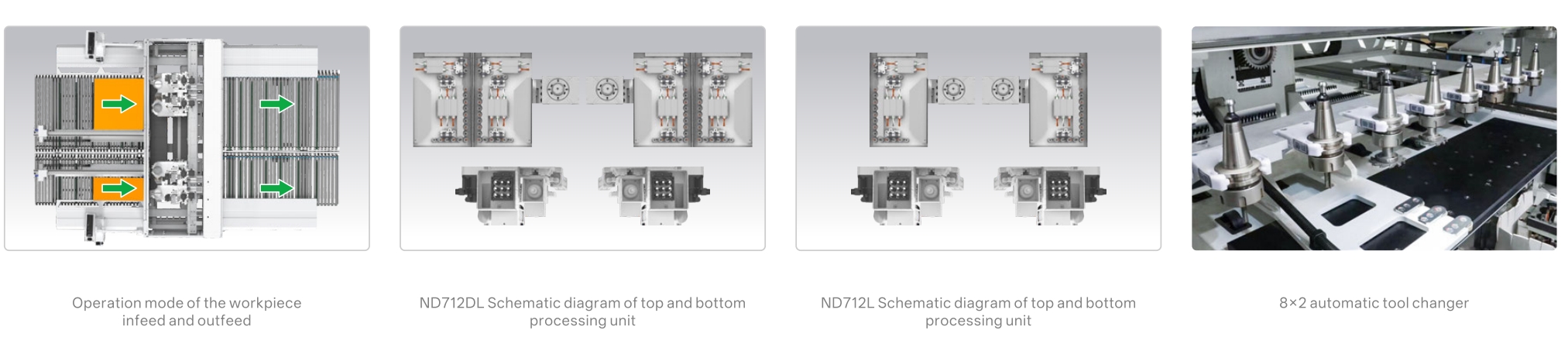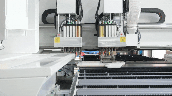 Equipped with 4 high-speed spindles and two 8-position automatic tool changers, enabling efficient and intelligent processing of all six panel surfaces. -