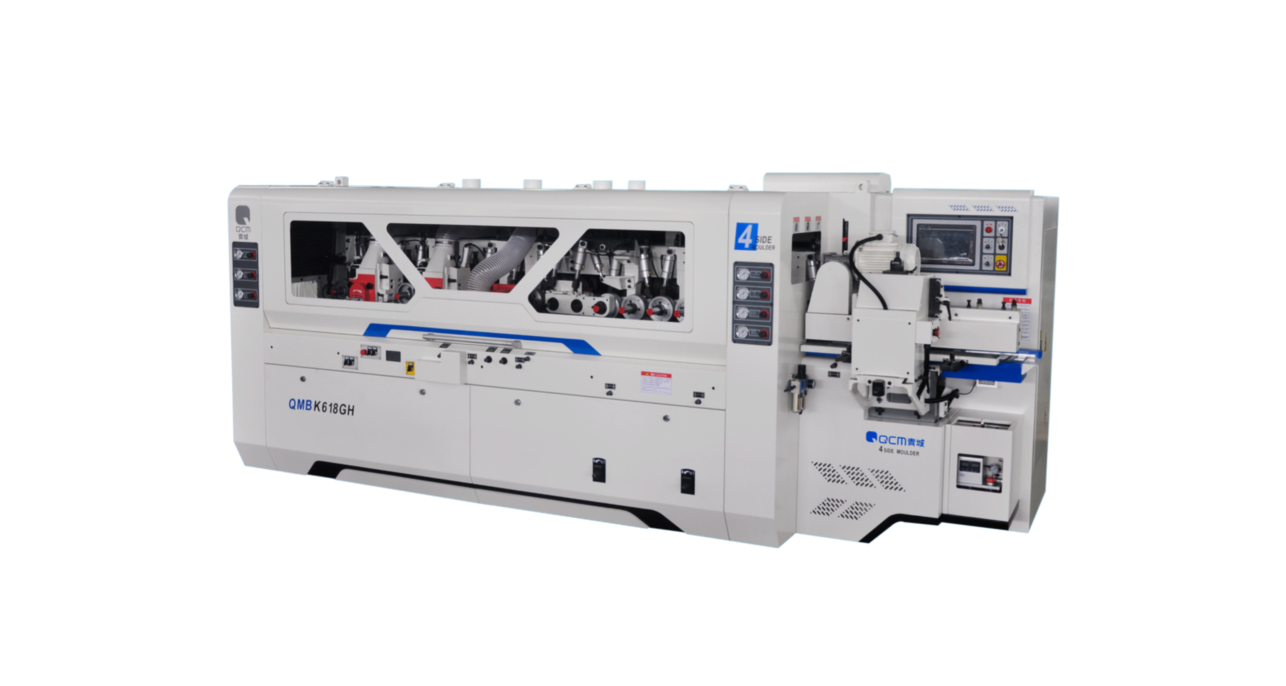 The QMBK618GH is a high-speed 6-spindle four-side moulder designed for edge-glued panels and solid wood components, especially short workpieces. It supports up to 60 m/min feeding speed with stable cutting and consistent surface finish.