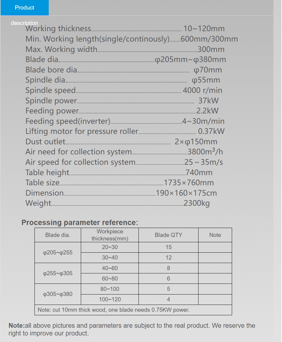 • Professional Solution: Designed for high-efficiency multi-blade ripping of wood up to 120mm thick, completing multiple cuts in a single pass to maximize productivity.