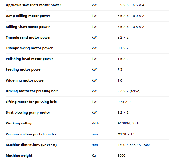 With multiple powerful motors—including 7.5kW × 6 for milling and 5.5kW & 6.6kW jump cutting motors—this machine is built for continuous industrial workloads. -