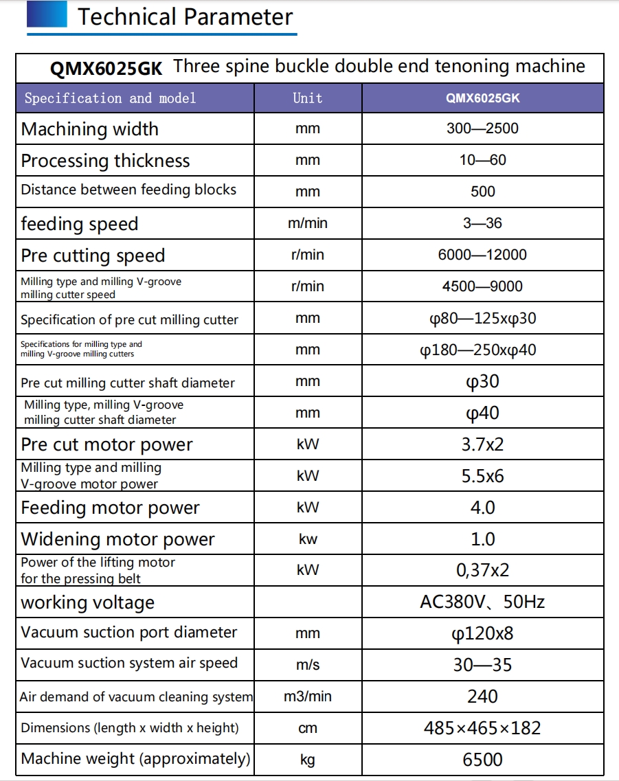 | Complete three-spine processing (tenon + slot) | QMX6025MK |